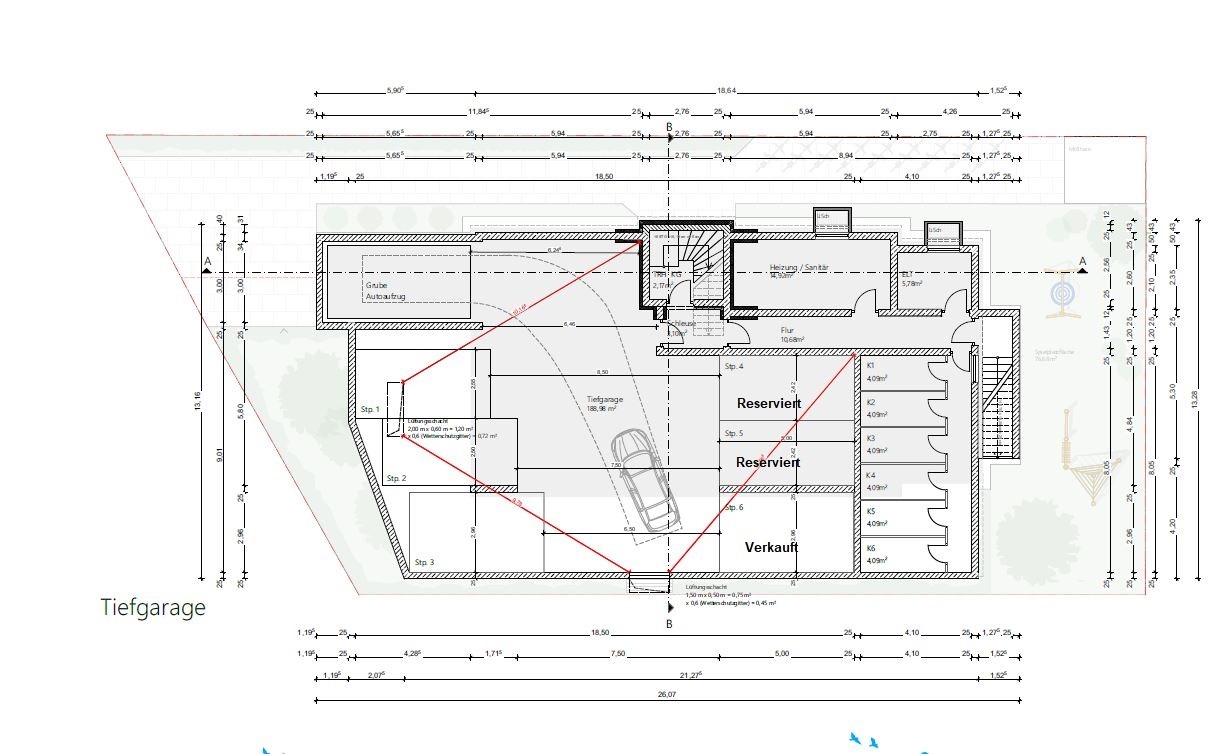 – Tiefgaragenstellplatz (erreichbar über Hubtisch)